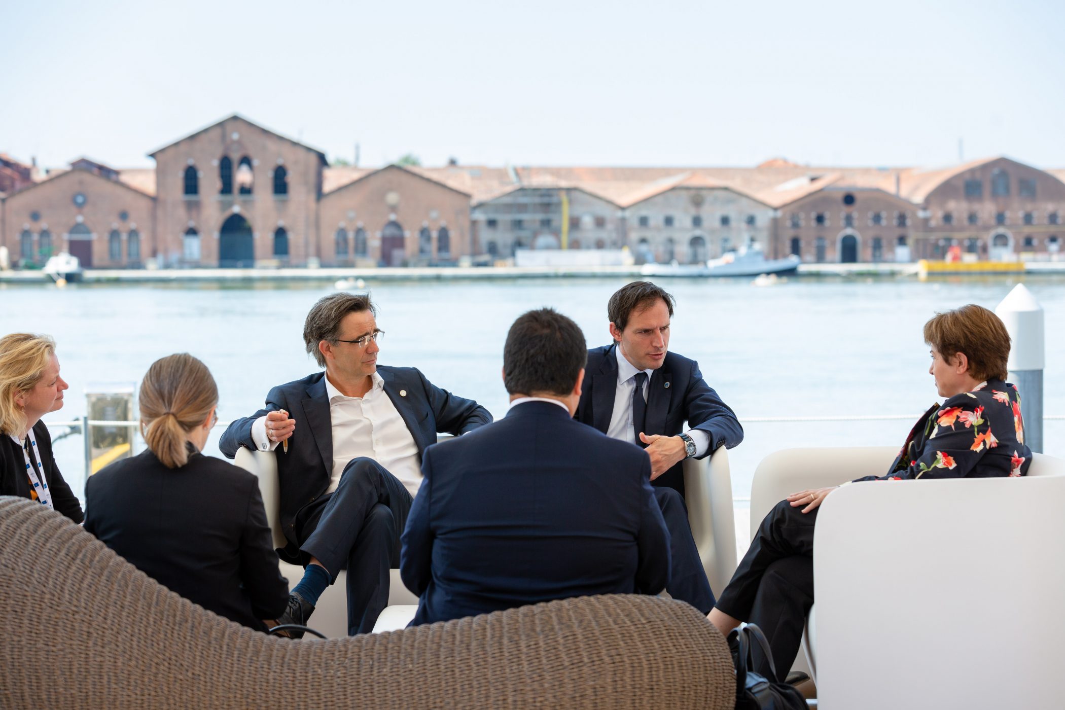 Managing Director Kristalina Georgieva meets with Minister Wopke Hoeskstra at Arsenale Venice. IMF Photo/Silvia Longhi 11 July 2021 Venice, Italy